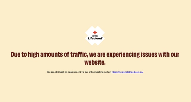 As a result, blood donation centres across Australia have been inundated, causing the Australia Red Cross Lifeblood website to crash most of Monday afternoon, as many flood the online booking systems and app bookings.