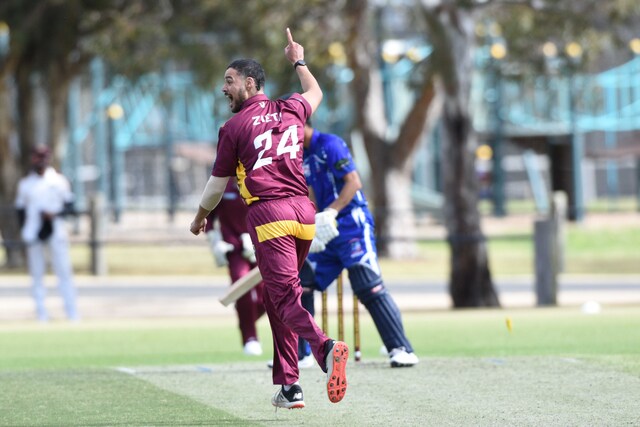 Khan was the next man back to the pavilion and while he provided some fireworks, including a huge six off Josh Dowling’s second ball, he was back in the sheds with 24 after Opanayaka trapped him LBW.